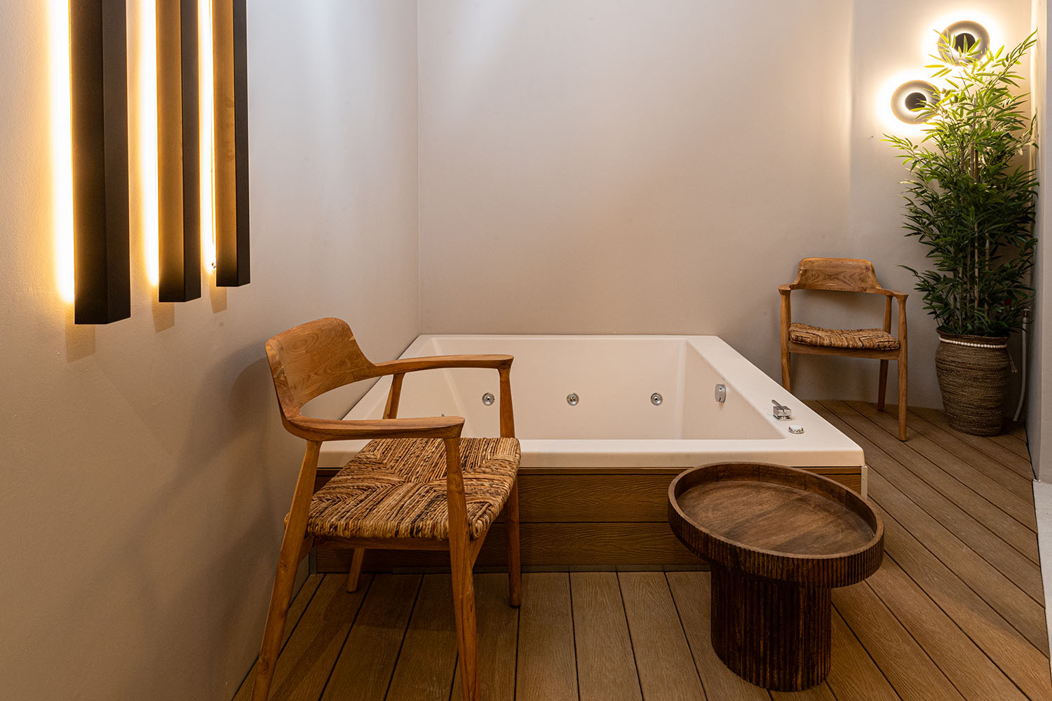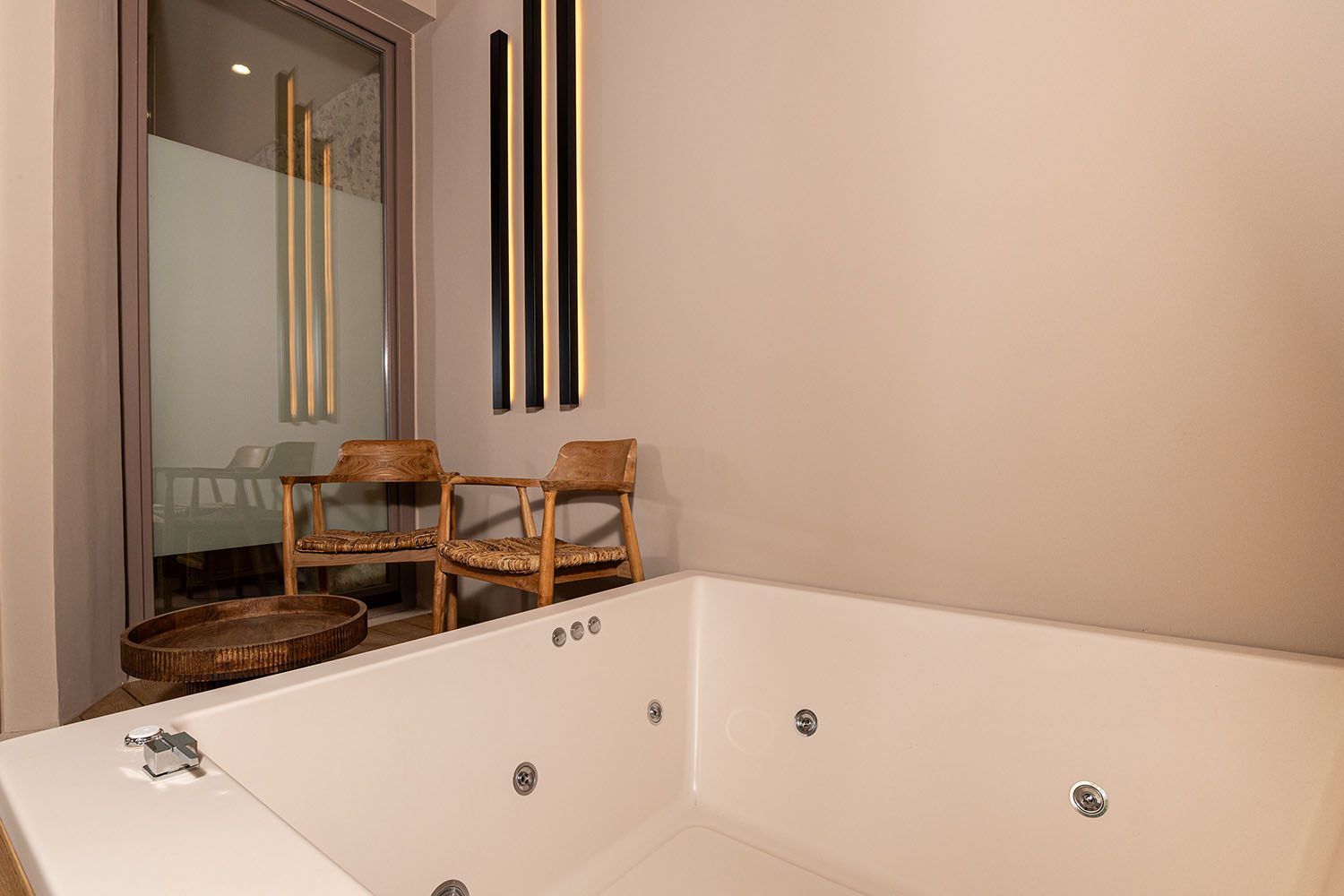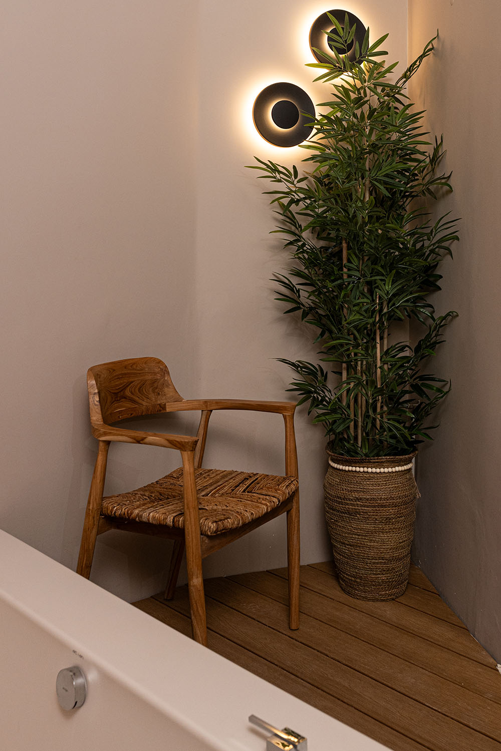 The Grace Kelly Suite embodies sophistication and natural harmony, offering a calming retreat designed with soothing earthy tones. Wooden elements, greenery, and warm lighting create a welcoming environment where relaxation comes effortlessly. This air-conditioned suite features one bedroom and a private bathroom with a shower, a hairdryer, and a luxurious spa bath for an exceptional experience. A private terrace invites you to unwind, while high-end amenities ensure comfort at every moment.